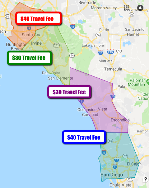 San Diego County – North ($30 Travel Fee)